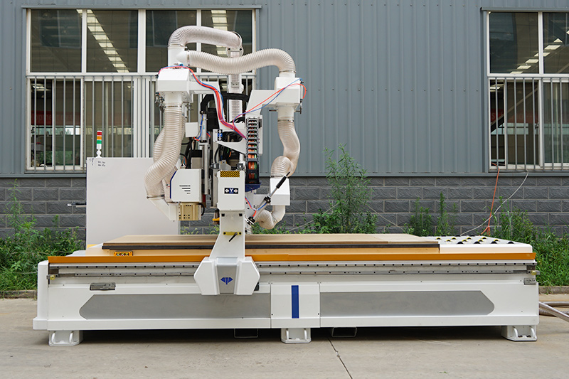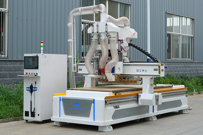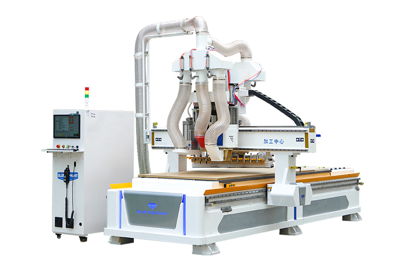 采用HQD自動換刀主軸和大容量刀庫,可以解決各種復雜生產(chǎn)工序,同時機器還配置了排鉆組和鋸片主軸,能夠解決板式家具三合一、二合一鏈接件所需安裝孔及隱形件所需安裝槽。
